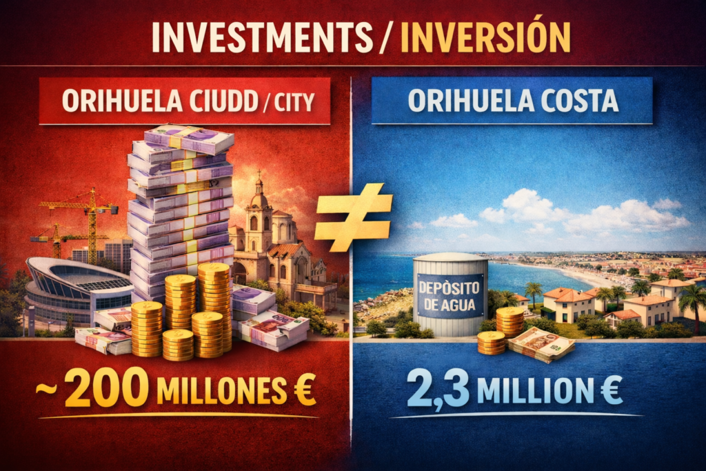 Orihuela Costa: promesas aquí, inversiones en Orihuela Ciudad.