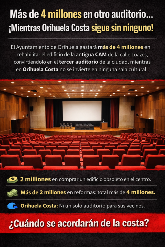Más de 4 millones para el tercer auditorio de Orihuela… mientras Orihuela Costa sigue sin ninguno Leer más »