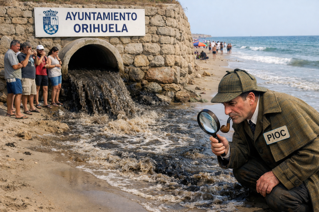 En junio y julio del año pasado tras el repetido cierre por contaminación de la playa de Cala Mosca, PIOC inició una investigación. Descubrió que había un vertido de aguas fecales como se aprecia en el video del facebook del partido,(Facebook) y se puso en contacto con HIDRAQUA, y el AYUNTAMIENTO en primer término que